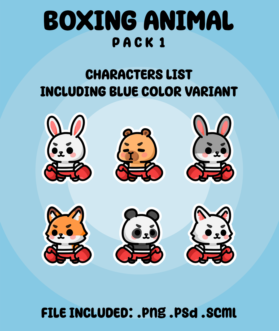 A Bundle pack contains Cute Animal Characters with boxer style, complete with animation. Suitable for side-scrolling, Fighting game, or platformer games